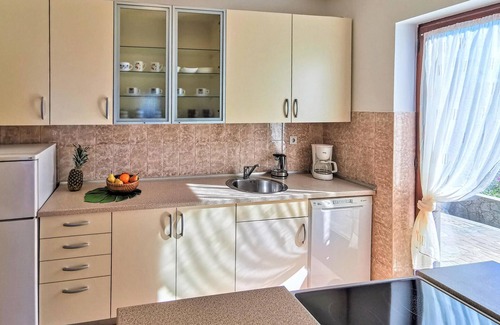 This lovely holiday home is situated in a peaceful location near Opatija. It extends over one floor and consists of two residential units. The terrace or balcony is orientated towards the sea, with a wonderful sea view and the shady terrace looks into the garden, with many Mediterranean plants. The owner lives on the property, but the garden around the house is only used by you, so you can maintain your privacy. There are cycle paths and hiking trails nearby. By car you can reach beaches in Voloko, Opatija and Iii, with an idyllic 12 km long promenade along the sea. You will find entertainment in Opatija, with a rich gastronomic offer and cultural events. You can also visit the nearby islands, the Uka Nature Park and the Istria region.