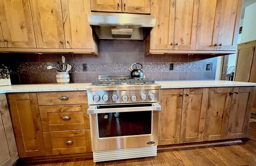 • Fully stocked kitchen with stainless appliances and an island that seats 4