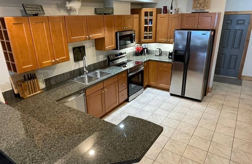 Our unit features granite counter tops, stainless steel kitchen appliances, linens, private backyard patio with natural gas BBQ, master bedroom private balcony with lake view, walk-out to resort's private beach and dock, view of the outdoor, private grass area off your patio. Either way you can go from jumping off the dock to running right thru our place to the heated pool or hot tub.