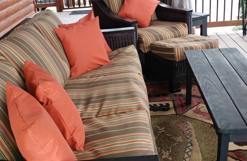 Indoors the cabin is beautifully furnished with antiques and special collectors' pieces. With an open floor plan guests can interact and enjoy each other while cooking, watching TV or playing games. Eagles Rest has custom millwork, knotty wood stairs and is fully loaded with first-class fixtures, furniture and electronics. Big screen LED TV's, Directv, DVR, Wi-Fi High Speed Internet.