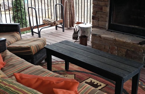 Keywords: Cabin, pet friendly, yard, mountain view, outdoor fireplace, pool table, game table, loft, sleeps 10, close to town, close to attractions, fire pit, Handicap accessible on main floor
