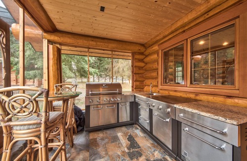 Our property is situated on beautiful, private Forest Lake and has 1000 feet of water frontage complete with our large U shaped dock as its centrepiece. Come hang out with nature in all of its glory. Enjoy one of our many balconies with nature surrounding you while you listen to the call of the loons, and watch eagles swoop down to catch the many rainbow trout dancing on the lake. You may spot deer, moose or beaver as you sip you coffee or favorite beverage. Enjoy an evening with your family around the beautiful outdoor fire pit under a blanket or stars and at times the northern lights. Relax in the outdoor hot tub overlooking the lake. Cook in one of three indoor kitchens or enjoy the fabulous outdoor screened in kitchen. Enjoy the many water toys provided for you: paddleboards (summer only), kayaks, canoes and a rowboat. Head across the lake to the rope swing ( all at your own risk). Or just go for a swim in warm crystal blue water.