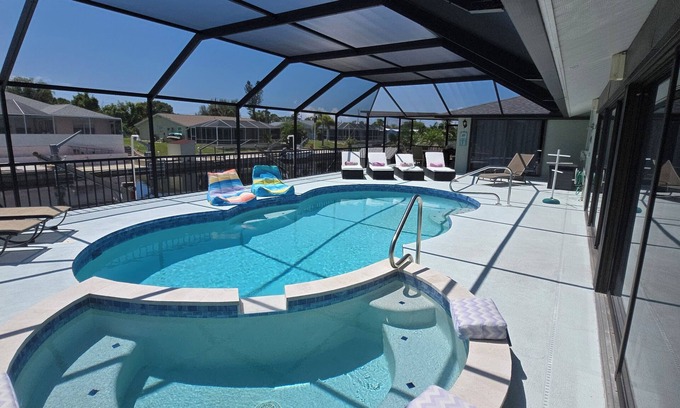 3 Miles from Beach! Beautiful Canal Home, 3 Bed/3 Bath, heated pool and spa is located in Englewood South. 3 Miles from Beach! Beautiful Canal Home, 3 Bed/3 Bath, heated pool and spa provides accommodation, featuring Pet Friendly, Security/Safety, Wellness Facilities, among other amenities. This House features Pet Friendly, Security/Safety, Wellness Facilities, to make your stay a comfortable one.