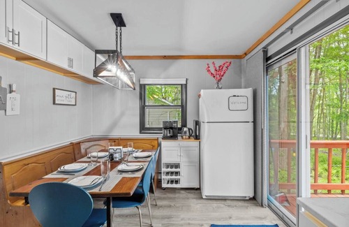 Escape to this getaway in the heart of the Poconos! Perfect for small families and couples, this cozy cabin offers modern comforts, and access to seasonal community amenities like pools, beaches, and kayak rentals.