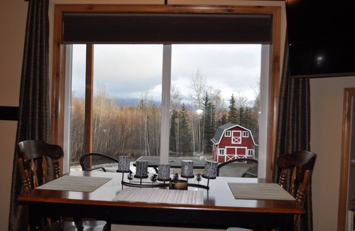 Lazy Bear and Salmon Run are adjoining suites and can easily accommodate larger groups. All the suites have a rustic elegance decor with All the Comforts of Home. We have panoramic views of Pioneer Peak, the Chugach mountain range, and the Knik Glacier. Surrounded by woods, there are trails galore to take a leisure stroll and a peaceful meadow to enjoy. We are minutes away from 5 lakes, all stocked with fish. So grab your fishing poles and enjoy the day! Whether a small gathering, or a family reunion, come make our home the start of your Alaskan adventure.