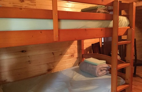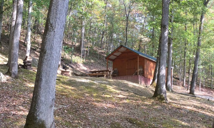 This 1-bedroom cabin in Beattyville is very isolated and would be perfect for your escape to nature. With a cozy queen bed and a charming bunk bed, guests can enjoy a peaceful night's sleep. The cabin features heating and AC, ensuring a comfortable stay no matter the season. The bathroom includes a refreshing shower for guests to relax after a day of exploring. Wood is provided for a restful evening around a small fire pit. There are lawn chairs and a picnic table for your meals fixed on a park style charcoal grill. Dishes, silverware, cooking utensils are not provided.