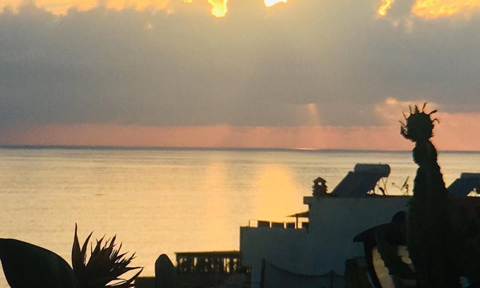 This apartment is located on the top floor and features a kitchen, living room, bathroom, two bedrooms and large dining area on a covered balcony. Also has its own large roof terrace with a connecting third bedroom. From the rooftop terrace you have views of the most; the sea, the beach and the life of the main street and the square. From here you can also see the mountain, and perhaps see the goats who climb the trees. And not least; may you experience sunrise and sunset in stunning colors.