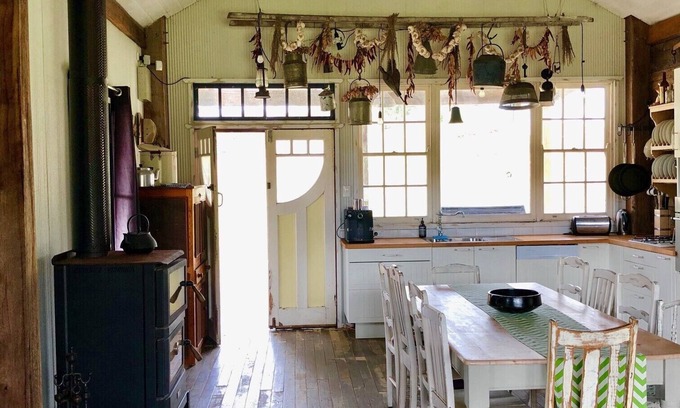 The Farm Stay Cottage is made up of separate dwelling being Cook house & living space in 1 & 4 separate farmers shearers quarters with adjoining balcony & 1 caravan for sleeping, which all up sleeps up to 12 people & 1 large wash house. The House is set on 30 acres
