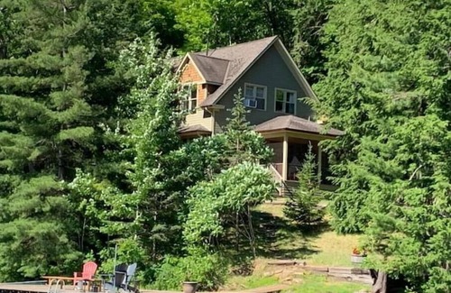 Charming two story waterfront cottage on beautiful 30 Island Lake a private, quiet, deep and clean lake (no public access) with great swimming and fishing overlooking a large stretch of crown land.