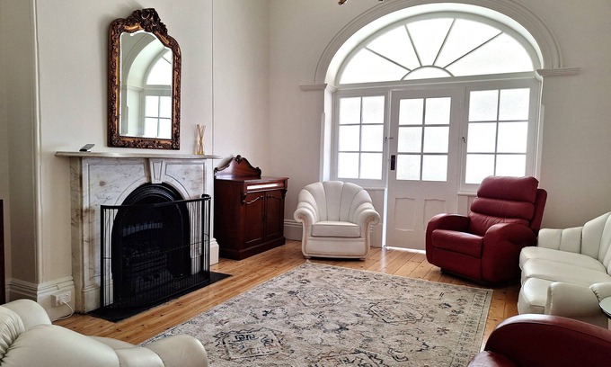 Our apartment was built last century with very high ornate ceilings in the front rooms. Lounge room with open gas fire and marble fire mantel. Smart television, internet access plus local TV channels. The connecting north facing sunroom, great place to recline in the chair and read your novel. Has a sofa bed if more guests which to stay.