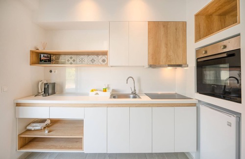 Aristi House is a stylish ground-floor apartment within the Aristotelia Gi Ikies complex, nestled in the heart of the vibrant resort town of Olympiada in Halkidiki. With its prime location beside the complex's expansive shared swimming pool, this modern retreat is perfect for a couple and two children, offering a double bed and a cozy sofa bed.