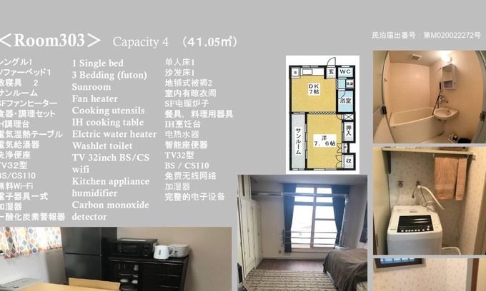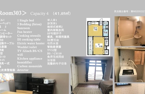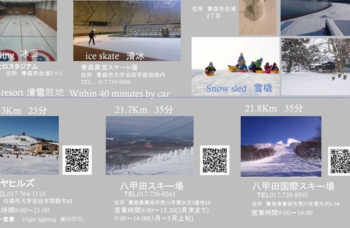 There are electric pod, large refrigerator, IH cookware, rice cooker, microwave oven, humidifier, fire alarm, carbon monoxide alarm, free Wi-Fi, and free bicycle rental.You can see the city, Mt. Hakkoda, fireworks, etc. from the rooftop.1.5km to Nebuta venue, 800m to 100 selected Japanese city parks 800m to Aiura park, free zoo, beach in summer, cherry blossom festival in spring, stalls open, light meals and drinks sold, cherry blossoms 670 will be in full bloom at once.Winter festivals are sometimes held in winter, and you can see snow slides, kamakura (snow houses), and snow objects.Children can also play on snow sleds.100m to the convenience store, the shopping street is nearby and all the daily necessities are available.You can enjoy paid BBQ on the rooftop from April to October.