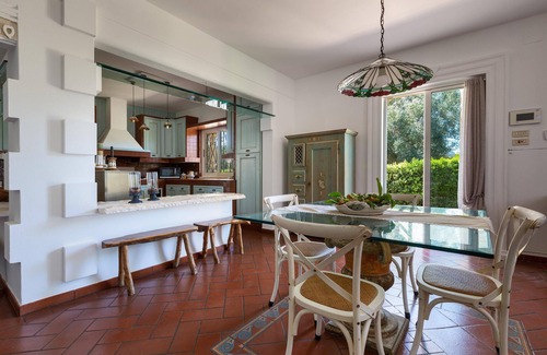 The villa with swimming pool is equipped with accessories such as air conditioning in every room, washing machine, electric and wood oven, sink with marble top, tv. In the garden, in addition to the swimming pool with solarium and furnished porch, there is a parking area. Pets are allowed. Safe, alarm system and surveillance video.