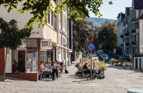 From the apartment, you're just 800m away from the Byparken light rail stop, which is considered the city center. Additionally, you'll be only 50m from Café Nobel Bopel and 100m from the Bunnpris grocery store, open on Sundays.
