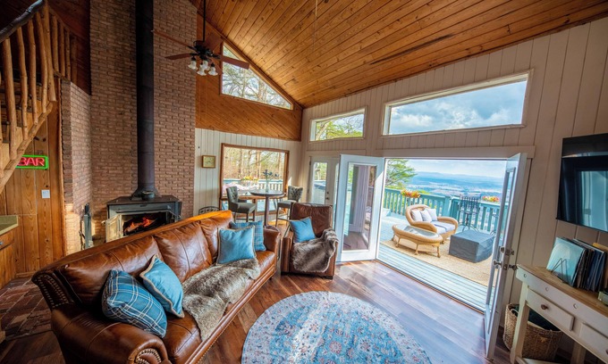 3BR, 2BA, stunning mtn view, jacuzzi, dry sauna, fire pit, wood burning stove | Cabin in Menlo