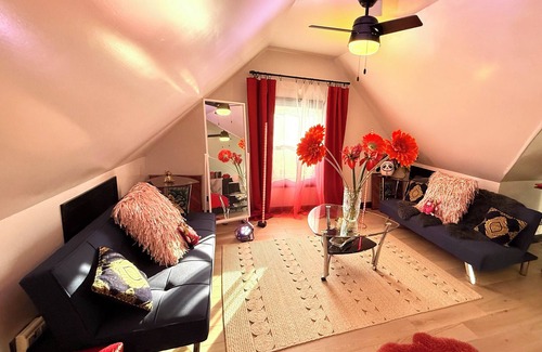 Welcome to your peaceful 3BR Retreat in a House 2Floor! Nested in a tranquil rural setting yet close to Raging Waves and Greater Chicago Area. This sun-filled 2nd floor cozy retreat offers Artsy Romantic style with nature views. Enjoy a private entrance, balcony overlooking a fruit garden, hard wood floors in all bedrooms and a granite floor in a stylish contemporary bathroom, cozy kitchenette with the contemporary sink, elegant décor, workstations in every room! Perfect for families, couples, or small groups. In the bathroom the fan and the lights are connected to blue tooth. All you h ave to do is to select your favorite music and enjoy it while you are taking a shower! For your romantic mood we got 4 U Smart RGB Lights & Smart Lights & Music in the Bathroom. Breed Deeper, Rest Better, have Fun!