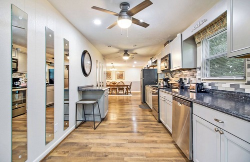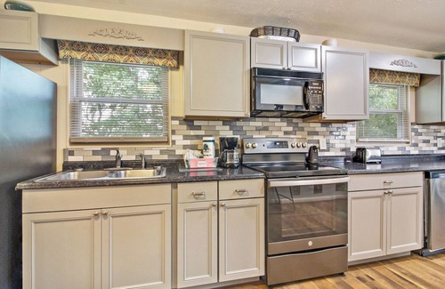 This upgraded condo offers 3 cozy bedrooms: a main bedroom with a queen bed, a guest bedroom with a queen bed, and a second guest bedroom with 2 twin beds. One bathroom features a shower stall, while the other includes a shower/tub combo. The kitchen has full-sized appliances, a toaster, a microwave, dishes, utensils, and basic cookware. Enjoy meals at the dining table for 8. Relax in the living room with a fireplace and sofa bed. It is located in the tranquil East Lake Tansi community.