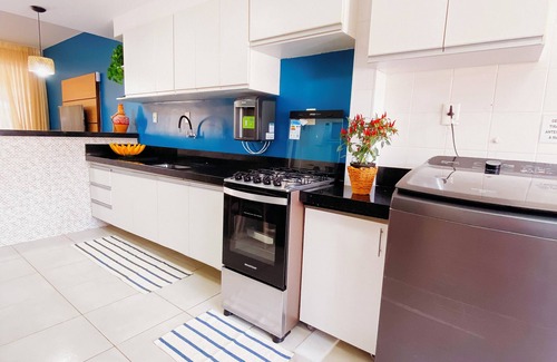 Fully equipped kitchen, duplex refrigerator, microwave, blender, 4 burner stove, washing machine.