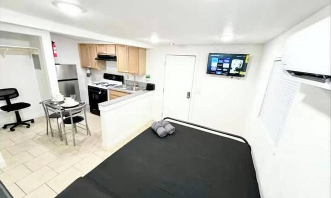Take it easy at this unique and tranquil getaway at this Mini studio the outside is under construction It doesn't have a nice view in the outside yet but it will be soon, but the inside is pretty fun and cozy to stay with friends and family is attached to other three studios next to it every studio have a private entrance with your own parking space, the neighborhood is calm and friendly it's not top notch but you love your stay Heads up at the moment the other 3 studios are under construction.