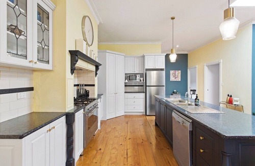 Each of the 4 bedrooms is impeccably styled with modern finishes. There are plenty of sleeping options for any group configuration, and the bunk room has a convenient workstation to support virtual commuting and studies. All 3 bathrooms are works of art, with a gorgeous wet room showcasing a clawfoot tub and rain shower, while classic design and antique furnishings define the other two.