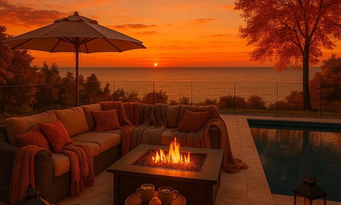 This 4 bedroom beach house with a heated Salt Water Pool and Hot Tub is a luxurious retreat that boasts breathtaking lake views and all the amenities needed for a relaxing vacation. The spacious living area is perfect for entertaining, with plenty of comfortable seating and a large flat-screen TV for movie nights. The fully equipped kitchen features modern appliances and ample counter space, making it easy to prepare meals and snacks for your family.