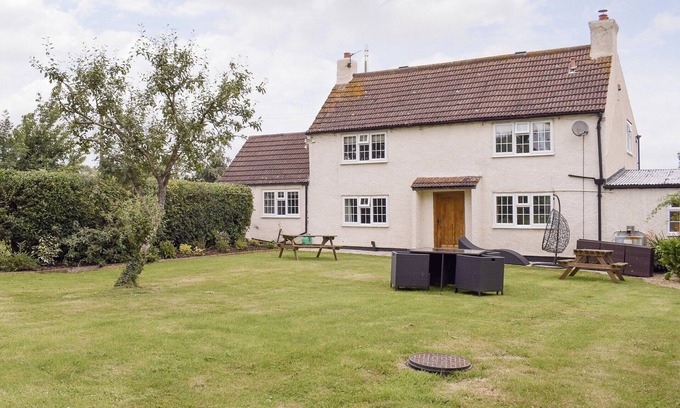 Bathroom: Bath, Toilet. Oil central heating, electricity, bed linen, towels and Wi-Fi included. Initial logs for wood burner and open fire included. Highchair. Welcome pack.. Large enclosed lawned garden with patio, garden furniture and BBQ. Bike store. Private parking for 5 cars; car port for 2 cars. No smoking. Please note: Sorry, no electric car charging.. Glebe Farm Cottage is a wonderfully converted 1850s farmhouse with a fabulous garden, patio and barbecue area where you can sit out and relax after a day spent exploring this fantastic North Yorkshire location. The living/dining room has a welcoming wood burner, and the spacious second living room has an open fire. The large country kitchen is equipped with all mod cons, as well as a homely Aga (available November - April). The cottage lies on an arable farm and is surrounded by miles of unspoilt countryside, yet is just 8 miles from the bustling market town of Northallerton and prospering town of Yarm. There are fantastic countryside views in all directions, and if you fancy pampering yourself, there is an exclusive spa behind the cottage set back in the grounds (open Tues-Sat, treatments to be booked in advance).