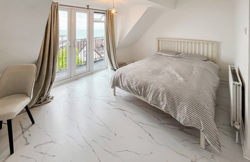 Lovely renovated house very close to the beach and set over four floors making for some great views across the sea and beaches.. 2 steps to entrance.