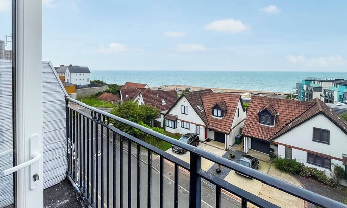 The property offers a practical and comfortable base for families or groups. The open plan living and dining area on the first floor is a great space to spend time together, with large windows that let in plenty of light and look out towards the Channel. There’s a well-equipped kitchen, and the balcony is a nice spot to enjoy a quiet drink or watch the changing skies over the sea.
