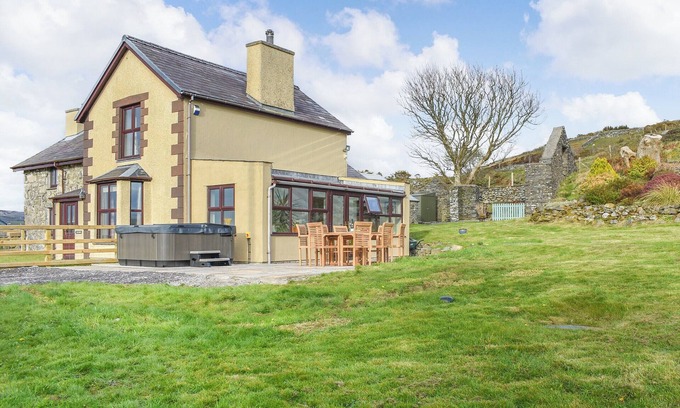 Bathroom: Bath With Shower Over, Toilet. Oil central heating, electricity, bed linen, towels, Wi-Fi and fuel for wood burner included. Travel cot and highchair. . Enclosed grounds with sitting out area and garden furniture. Hot tub for 5 (private). Private parking for 4 cars. No smoking. Please note: There are steps in the grounds.. Set in an elevated position with spectacular views, this spacious cottage is full of character and simply perfect for family and friends to get together. The cottage also stands in an UNESCO World Heritage Site - Nantlle Valley-slate production.