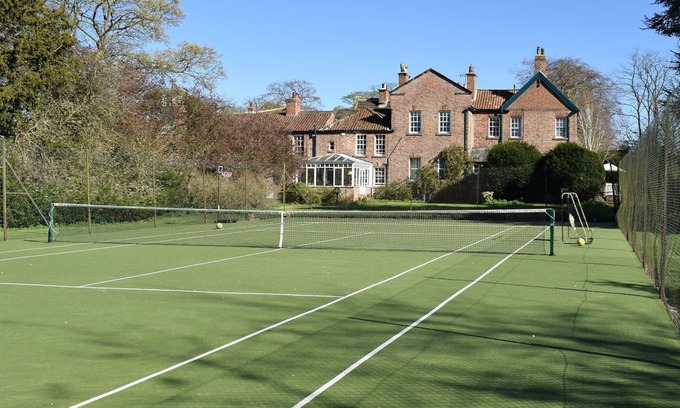 Separate toilet.. Partial oil central heating (first floor), electricity, bed linen, towels, Wi-Fi and logs for wood burner included. Cot and highchair.. Sitting-out area with garden furniture. Large natural grounds (shared). Table football. Multi-purpose sports court. Tennis court (shared). Bike store. Private parking for 4 cars. No smoking. Please note: There are 2 ponds in the grounds (1 fenced), 54 yards away. . The Courthouse is set in large grounds offering a mix of fun and adventure for all the family. The property is part of a Grade II listed building, Maunby Hall, it has high ceilings on the first floor, plenty of space and dates back as far as the 1700s. The large open plan kitchen/dining room is definitely the social hub of the house. There is a large table, perfect for playing games with the family and a TV, mixed with a grand old Aga to keep the room warm, but don’t worry as there is a conventional oven and hob too. There is even a table football in one of the rooms just off the kitchen area, and the kitchen is linked to the large conservatory which is perfect in the summer for enjoying a drink whilst watching the sun go down, and the children play in the large, natural grounds. There is also a tennis court with carpet style surface - used once every couple of weeks by other local people.