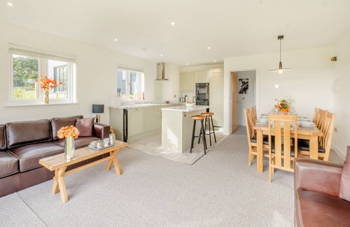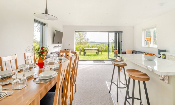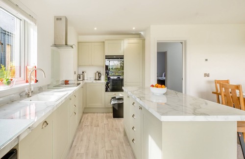 Shower Room: Walk-In Shower, Toilet. Air source central heating, electricity, bed linen, towels and Wi-Fi included. Cot, highchair and stairgate. Welcome pack. Back garden with sitting-out area and garden furniture. Private parking for 3 cars. No smoking.. Viking offers an open plan living space on the ground floor, finished to an excellent standard. Built in 2023, this property features LED mood lighting. The living area has large bi-fold doors opening directly onto the garden, where you can enjoy glorious sunrises and sunsets and beautiful countryside views. The dining area has seating for eight people, whilst the kitchen has atmospheric lighting including an island and breakfast bar. The master bedroom has an en-suite shower room, and the other three bedrooms have access to the bathroom and shower room. All shower rooms have walk-in rain showers.