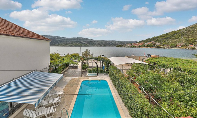 Spend your vacation in a vacation home with pool right on the waterfront, separated from the beach only by a road. Modern and comfortably furnished, there is a room and a bathroom on the first floor. The external staircase leads to the second floor with three bedrooms, each with bathroom, air conditioning and TV. By the pool, on the sun terrace is an outdoor kitchen with barbecue. Poljica is a small village near Trogir, where every year the Soparnik festival is held, where the best cake is chosen from spinach, parsley and spring onions. Delicacies of this region can be tasted in local taverns.