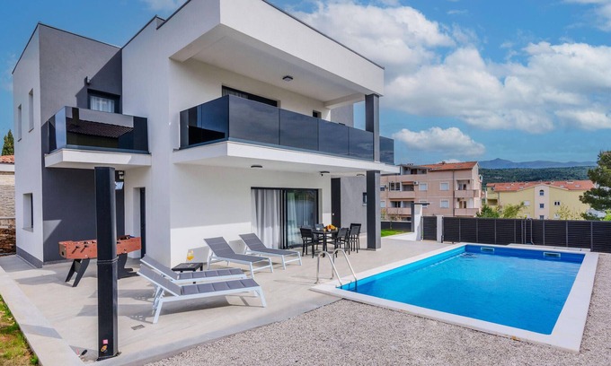 4 bedroom awesome home in Posedarje is located in Municipality of Posedarje. 4 bedroom awesome home in Posedarje provides accommodation, featuring Laundry, Private Pool, Ocean View, among other amenities. This House features Laundry, Private Pool, Ocean View, to make your stay a comfortable one.