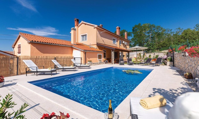 This comfortable vacation home with pool is located in the small Istrian village of Sumber, near Labin. It is functionally and comfortably furnished for a pleasant stay of a larger family. The first floor is connected to the second floor by an external staircase. The beautiful terrace overlooks a well-maintained flower garden, planted with various Mediterranean plants. In the surrounding area you can walk or bike and enjoy the idyllic atmosphere. Visit the historic Labin or the beautiful beaches in Rabac.