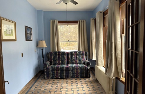 This cottage sits tucked in the tree line behind the Maine Inn. It features its own private in ground swimming pool right in front of the cottage. A 5 minute walk, or short drive from the cottage is the larger swimming pool shared with all hotel guests, lots of lawn games including shuffleboard, bocce, and horseshoes, the golf course and more. Restaurants serving breakfast, lunch & dinner right on the property! Across Route 26 you'll find our mini golf, driving range and disc golf course along with an ice cream shop!