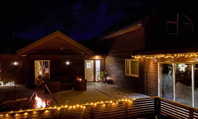 Enjoy your fishing vacation in this vacation home in a unique location. The accommodation offers you a number of perks and is wonderful for a larger group that wants a carefree active vacation. Maybe for her birthday grandma invited the whole family for a summer vacation? Set a nice table in the living room with high ceilings and a beautiful light and host the birthday party here. The children will help decorate well and grandma can unwrap her gifts on the terrace with coffee and strawberry cake. Enjoy a glass of champagne in the bubbling hot tub at sunset while the kids play table tennis. This is a wonderful birthday party, isn't it? The next day you can go fishing and swimming in Øyasundet.