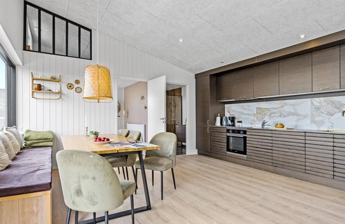 Experience a relaxing stay in the modern holiday home, which impresses with its inviting atmosphere and classic elegance. The bright interiors are cosy and stylishly furnished, making you feel right at home. Conjure up delicious meals in the kitchen or get together for games or film evenings at the dining table or on the sofa.
