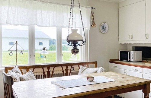 Welcome to a classic red cottage with white knots, where horses and cows graze in paddocks outside in rural idyll. The house is of an older character and is located on a horse farm. A perfect accommodation for a family or group of 4 people. Here you are in a quiet area but close to several historical places. The house probably has most of what you could need for your stay, there is a separate biochemical toilet in the bathroom, but still bright and fresh. The kitchen is rural with plenty of dining and social space. There is a fridge/freezer, dishwasher and microwave. The living room has a sofa group with a TV corner. In the bedroom there is a double bed of 180 cm and a bunk bed. You enter the back of the house and you come straight into a smaller hall and the kitchen to the left. If you open the door on the front, you will see the garden surrounded by a stone fenced yard where the cows graze on the other side. The owner of the house lives in the white house behind Ert where there is also a stable. Pets are welcome as long as they don't run loose because of the farm animals and the road outside. The road is a minor gravel road that leads you out to the E20. The cottage is located near Mariestad where you can take nice dips in Lake Vänern or in any of the other lakes that are around. For those who like nature, you can hike, cycle, pick berries and mushrooms. Bathing areas are available in several places not far from the house. Welcome to relax in the garden and keep an eye out for birds, deer and maybe moose.