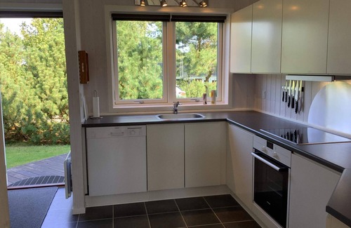 Layout: Kitchen(cooker(electric), coffee machine, microwave, dishwasher, fridge-freezer), Living/bed room(TV(german television channels, danish TV channels (DR1 and TV2), norvegian TV channels , swedish TV channels), DVD player, CD player, stereo unit, chromecast), bedroom(double bed, children's bed, high chair), bedroom(double bed), bedroom(2x single bed), bathroom(washbasin, shower, toilet, washing machine), heating(electric), terrace, garden furniture, sun loungers, air to air heatpump