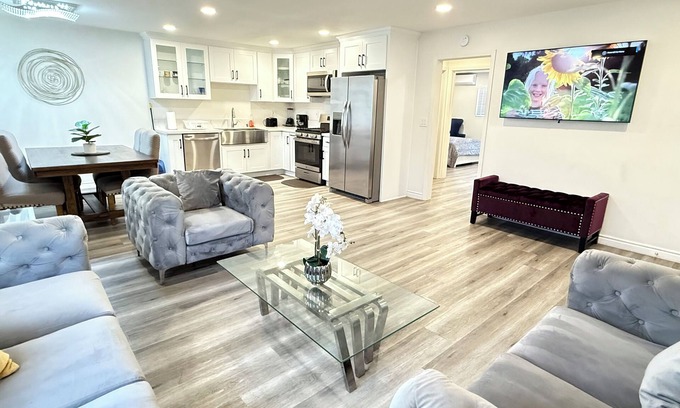 Great location, 10-15 mins to Ontario Airport, Ontario Mills, Ontario Convention Center, Pomona Fairplex, Raging Waters and more! Mins away to the old town of City of Upland, colleges, shops, markets, malls, parks, golf courses, banks, hospital, schools and more... Lovely home nestled in a quiet neighborhood. Perfect place newly remodeled with extraordinary designs & high-end appliances. Also, it's time for you to visit DTLA, Disneyland, Universal Studio and so on...