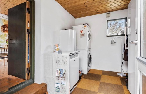 This charming vacation apartment offers ample space for family or friends, providing a cozy atmosphere perfect for relaxation. The fully equipped kitchen, featuring a refrigerator, electric/gas stove, dishwasher, and coffee maker, invites guests to prepare meals while enjoying lovely views. A comfortable living space with sofas, a cozy sitting area in the bay window, and internet with Wi-Fi ensures that leisure time is well spent. The bathroom includes modern amenities with a shower, while practical features such as a washing machine and dryer add convenience to the stay. With three bedrooms, including three double beds, and an energy-efficient heating system, this vacation home promises comfort in every season. The lush garden invites outdoor enjoyment, making it an ideal retreat for nature lovers. Explore the stunning local surroundings, including the famous chalk cliffs of Møns Klint and charming nearby towns.