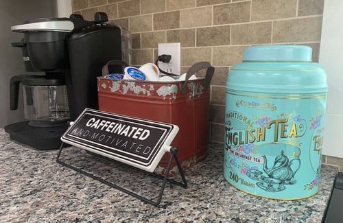 Just around the corner you can cook breakfast, lunch or dinner in our large and well-appointed eat-in kitchen with plenty of seating for everyone. We have you covered with the coffee - we provide a Keurig and all different kinds of flavors!
