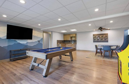 • Game room with pool table, corn hole, arcade machines, TV and card table