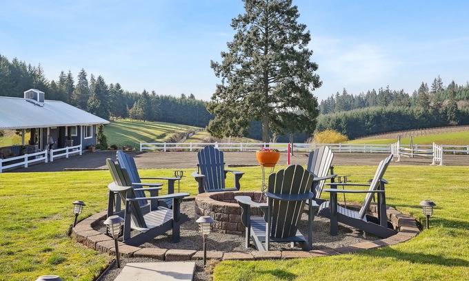 The Location: This vacation home has amazing views and a private location yet it is conveniently located 30 minutes south of downtown Portland and 15 minutes north of the heart of the Willamette Valley Wine Country. This private estate home is situated in an exclusive area with magnificent views but only 10 minutes from a large grocery store and Costco. This up-scale vacation home is ideal for attending equestrian events and wine country events or for exploring other area attractions including Mount Hood, the Beautiful Oregon Coast, and the famous Multnomah Falls.