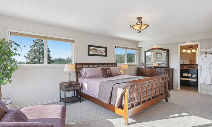 Bella Vista is located on five-acres of equestrian property across from boutique vineyards yet close enough to the city to enjoy the best of both worlds. Nestled amongst large estate homes, you will find serenity in this 4000 sq ft vacation home with 6-bedrooms 4.5-baths, with two full kitchens and living areas located near the top of Parrett Mountain. It is a perfect place to call home away from home.