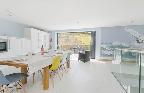 This stunning contemporary house is situated 150 yards from the big sandy beach in Challaborough and can sleep eight people in four bedrooms.