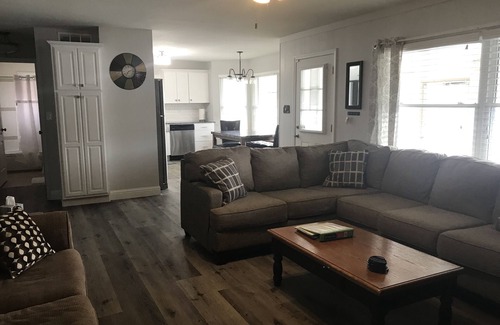 Perfect for swimming, fishing or just relaxing. Living room has plenty of lounging area. Kitchen is fully equipped, kitchen table seats 6+. You may want to dine on the dock with a table setting for 6 with additional seating at the bar plus additional outdoor furniture. There is also additional seating/dining area on the porch. The porch also features a full sized refrigerator. Dock has gas grill and mini refrigerator, another charcoal grill is located on side of house. Located less than 10 minutes to town and close to attractions. Many waterfront restaurants within a few miles by land or water.