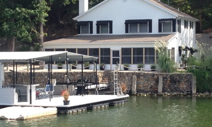 The home has been newly updated and sits on 180 feet of waterfront in a beautiful deep cove. Our large flat parking areas will accommodate plenty of parking and/or outdoor activities. Relax on the wrap-around screened porch or spend time, just 7 steps away, on our private entertainment-friendly dock which offers 11 x 26 covered slip, two PWC lifts, large 18' x 30' covered recreation area with outdoor kitchen, flatscreen TV (during season Jun-Sep) and a spacious 8' x 10' swim/sun dock.