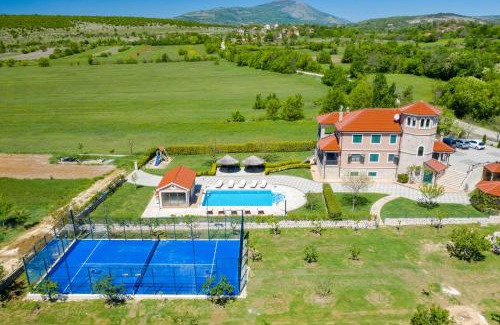 25 miles from Barone Fortress in Drniš, 5-Bed Villa with Pool, Jacuzzi & Padel Court provides accommodations with access to a sauna, hot tub, and fitness center. This property offers access to a balcony, free private parking, and free Wifi. On clear days, guests can head outside to enjoy the villa's outdoor fireplace or simply kick back and relax. Providing a terrace and mountain views, the spacious villa includes 5 bedrooms, a living room, satellite flat-screen TV, an equipped kitchen, and 4 bathrooms with a hot tub and a shower. Towels and bed linen are provided in the villa. For added privacy, the accommodation features a private entrance. In addition to a seasonal outdoor pool, the villa also features outdoor play equipment and shared lounge. Sibenik Town Hall is 26 miles from 5-Bed Villa with Pool, Jacuzzi & Padel Court, while Krka Waterfalls is 22 miles from the property. Split Airport is 34 miles away, and the property offers a paid airport shuttle service.