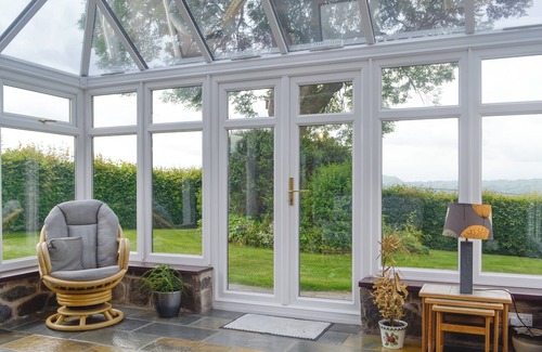 Bathroom: Bath, Heated Towel Rail, Toilet. Oil central heating, solar panel heating, electricity, small wind turbine producing electricity, bed linen, towels and Wi-Fi included. Initial logs for wood burner included, remainder at £6.50 per basket. Cot, highchair and stairgate available on request. Welcome pack. . Large enclosed lawned garden with patio, terrace, garden furniture and BBQ. 2-acre field. Hot tub for 6 (private). Bike store. Private parking for 4 cars. No smoking.. This fabulous property is located just outside Newtown and is surrounded by 360 degree views of the Mid Wales and borders rolling hills and mountains. This detached holiday home has everything that a family or group could need for their getaway, and is within a great location for those taking their pets on holiday as it has a large enclosed garden and a 2-acre field attached to the property. This property has a large entrance hallway, spectacular views from the conservatory, sleeps 8 guests over four bedrooms, with two of them boasting en-suite facilities, and one other bedroom with a shower. There is also a games room which enjoys a full-sized snooker table, and an additional room where your little ones can enjoy a play about on the Wii. Once your little ones have worn themselves out and are fast asleep in bed, spend an evening under the stars with your loved one, or friends, and immerse yourself in the private hot tub that sits in the garden, or even enjoy an al fresco supper, with the barbecue using the conservatory as a cover if necessary. Alternatively, on a cold winter’s evening, snuggle up in front of the roaring wood burner with a blanket and a hot chocolate, enjoying the picture window with those stunning views, whilst spending some well-needed time with your nearest and dearest.